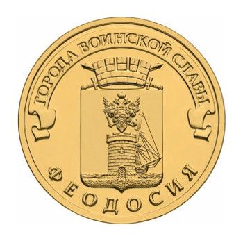 Монета из серии «Города воинской славы» с изображением герба города Феодосии. Выпущена в обращение 11 июля 2016 года.