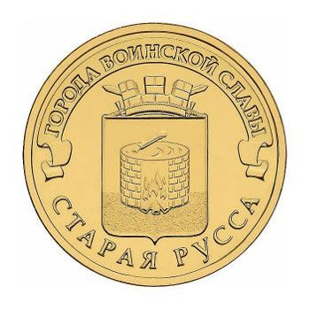 Монета из серии «Города воинской славы» с изображением герба города Старая Русса. Выпущена в обращение 15 марта 2016 года.