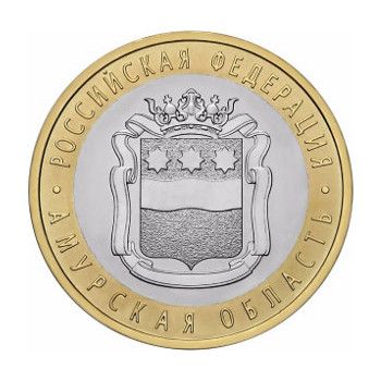 Монета из серии «Российская Федерация» с изображением герба Амурской области. Выпущена в обращение 30 июня 2016 года.
