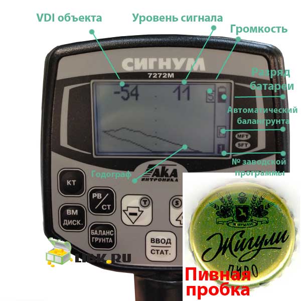 Металлоискатель использует модернизированная технологию годографической визуальной индикации. На экране мы видим картинки в виде лучей и петель. При этом, каждому типу объекта, будь он из железа или цветного металла, будет соответствовать своя картинка годографа.