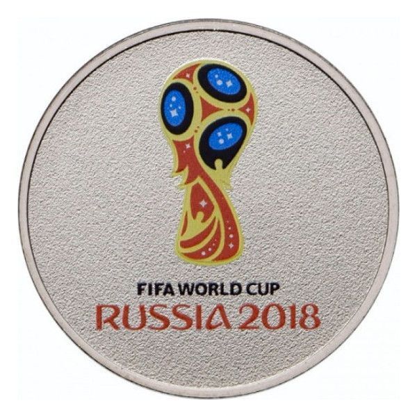 Монета достоинством 25 рублей, выпуск которой приурочен к проведению в России чемпионата мира по футболу. На реверсе - цветное изображение эмблемы ЧМ 2018. Монета отчеканена Московским монетным двором. Официальная лицензионная серия, выпущенная ограниченным тиражом.