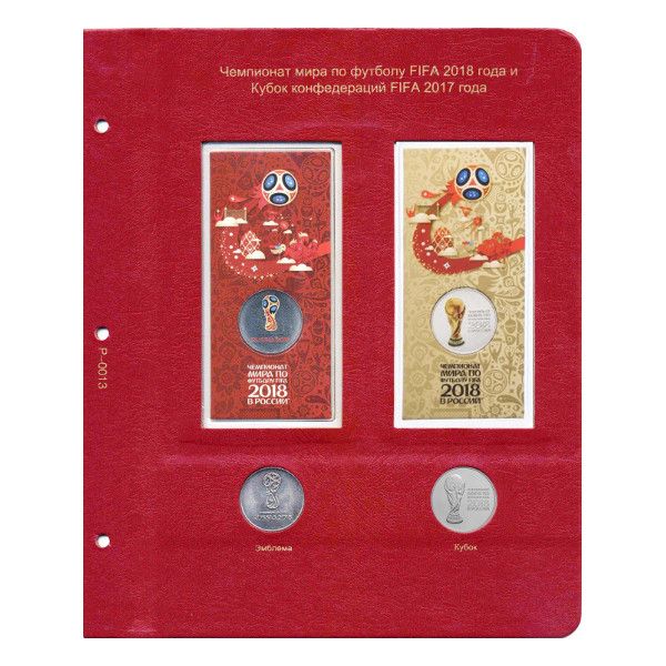 Лист, предназначенный для хранения юбилейных монет РФ, посвященных проведению в России чемпионата мира по футболу 2018 года, а также Кубка конфедераций 2017 года.