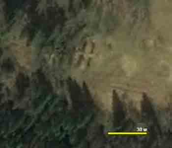 От себя еще замечу, что Яндекс и Google показывают местность по-разному, и фундамент здания, невидимый на одном сервисе, с легкостью идентифицируется на другом. Это связано с тем, что остатки объектов можно увидеть преимущественно за счет теней, отбрасываемых либо краями траншей, либо растущей на возвышениях растительностью (в особенности, малиной и крапивой, любящих ранее ухоженную землю). То есть если солнце в момент съемки светило вдоль траншеи – Вы ее различите с большим трудом, а если поперек – она будет ясно обозначена собственной тенью.