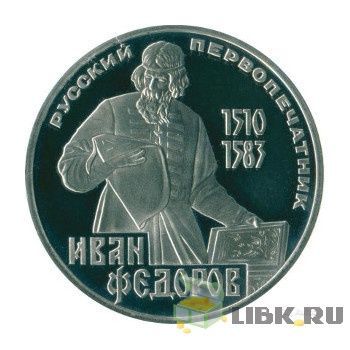 Памятная монета, посвященная 400-летию со дня смерти русского первопечатника Ивана Федорова. Выпущена 3 января 1984 года (год чеканки 1983). В 1988 был осуществлен повторный выпуск монеты тиражом 55 тыс. экземпляров.