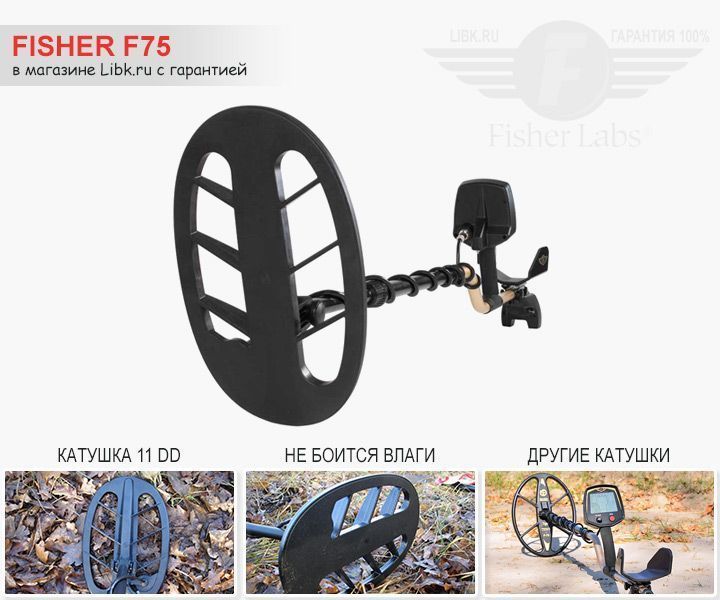 Fisher F75 – профессионального уровня металлоискатель, удобный и эргономичный. Он позволит вам успешно вести поиск сокровищ, кладов, ценных предметов как на различной почве, так и по воде. F75 грунтовый металлодетектор, с которым вы сможете искать по суше, а также по мелководью – у него катушка водонепроницаема, а вот блок управления нет.